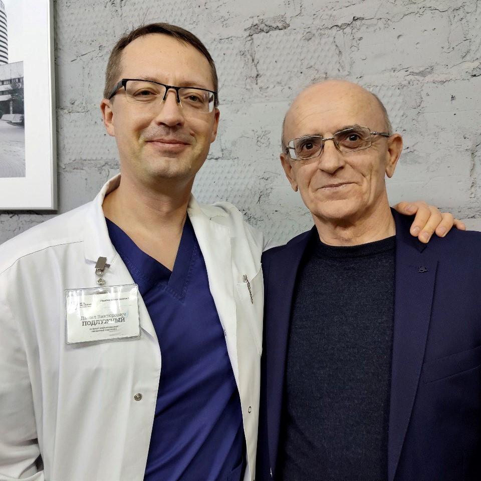 27 мая 2021 года за эту сложную операцию взялся заведующий хирургическим отделением N7 опухолей гепатопанкреатобилиарной зоны, к. м. н. Данил Подлужный. Воротная вена в диаметре 1–1,5 см — единственная вена, которая несёт кровь от кишечника к печени. Задачей бригады хирургов было удалить всю правую долю печени, поражённую опухолью, вместе с правой ветвью воротной вены, в которой находился опухолевый тромб. Любое неосторожное движение хирурга на воротной вене сопровождается огромной кровопотерей: в течение 20–30 секунд пациент теряет литр крови.